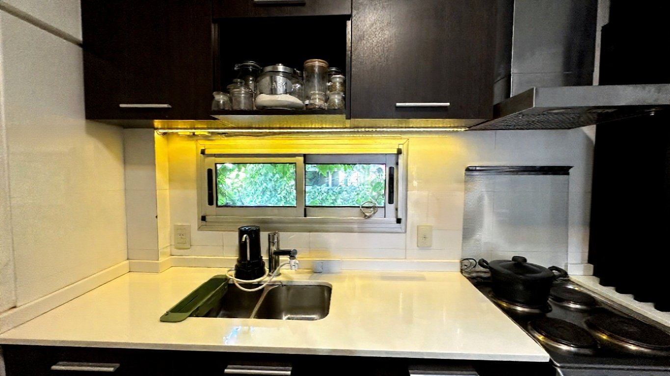 Cocina integrada con barra desayunadora y lavadero independiente, ambos con ventilacion natural.