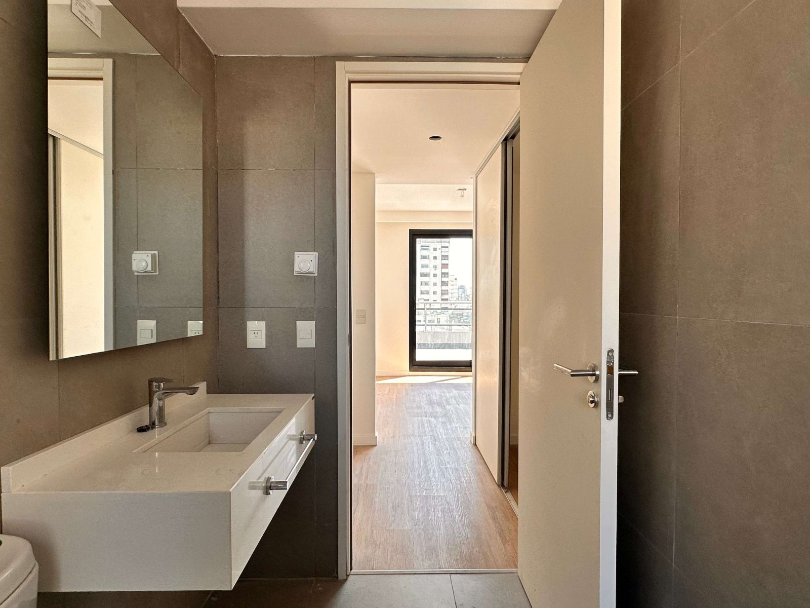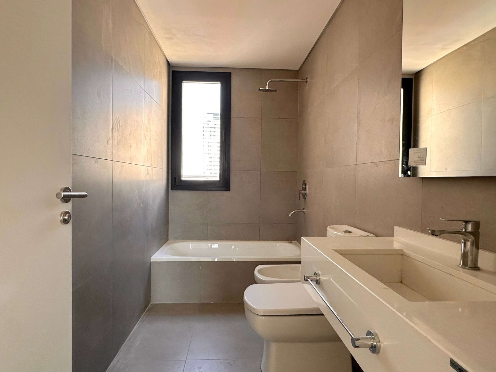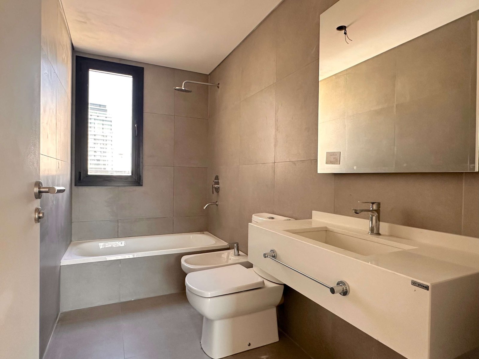 Ubicado en un moderno edificio de tan solo un año de antigüedad, esta propiedad se sitúa en una esquina estratégica y luminosa. Al ingresar, un amplio hall de recepción da paso a un generoso living-comedor con salida a un balcón terraza orientado al noroeste, con vistas abiertas al río y a la ciudad, y grandes ventanales que inundan el espacio de luz natural. La unidad cuenta con toilette de recepción.