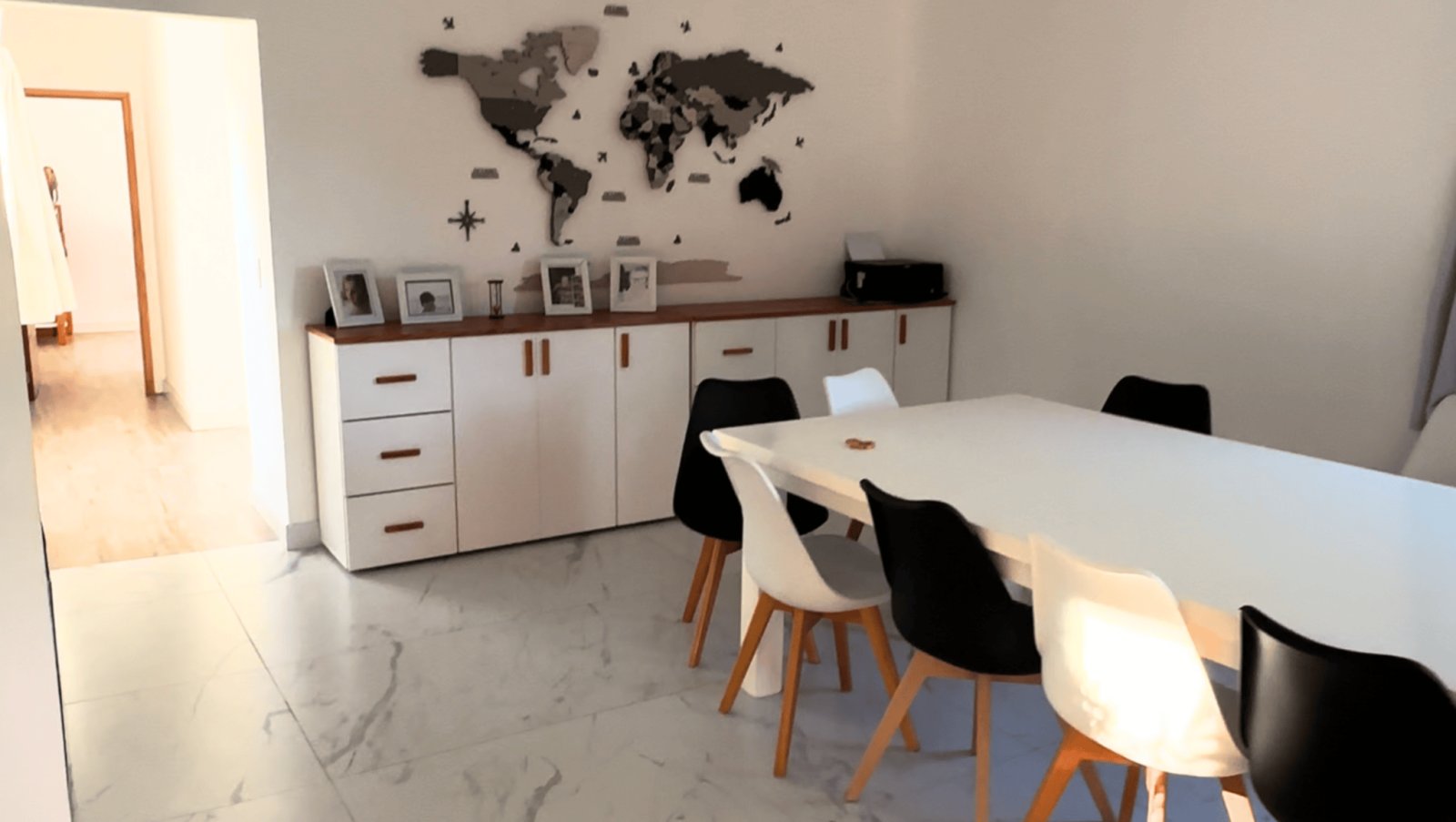 Amplio living con ventanales. Lus natural. Comedor con espacio para recibir cómodamente amigos y familia, Gran cocina con desayunador para seis personas.