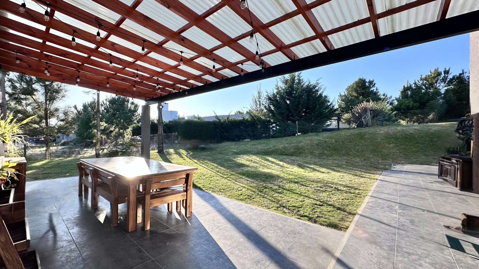 Además, dispone de dos dormitorios (uno en suite), dependencia de servicio, quincho con parrilla y horno a leña, parque con sistema de riego y garage con capacidad para tres autos o camionetas.