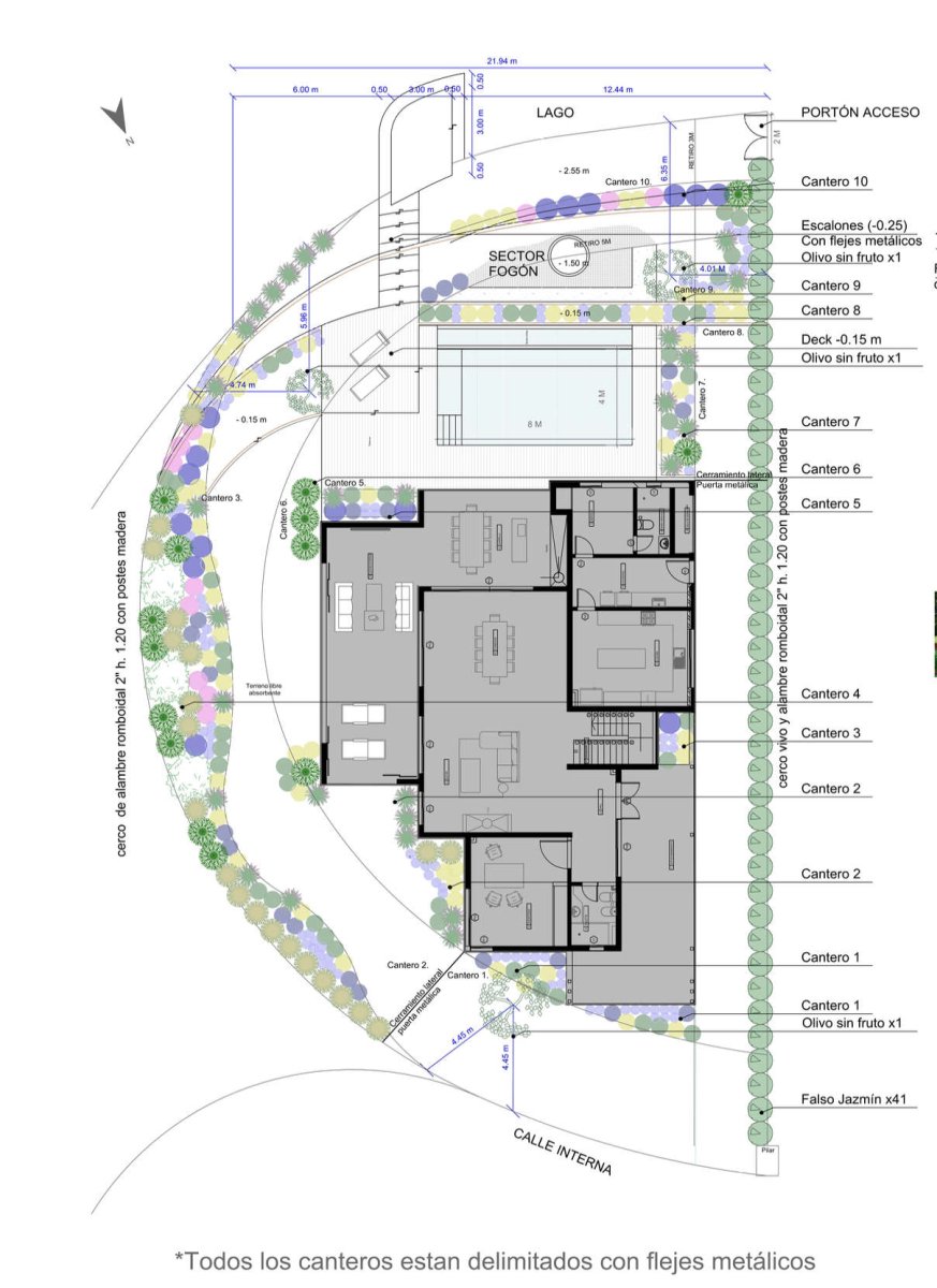Amplio hall de entrada, living comedor con vista al jardín y al lago, cocina semi integrada con isla y acceso independiente al sector de servicios (lavadero y dependencia con baño).