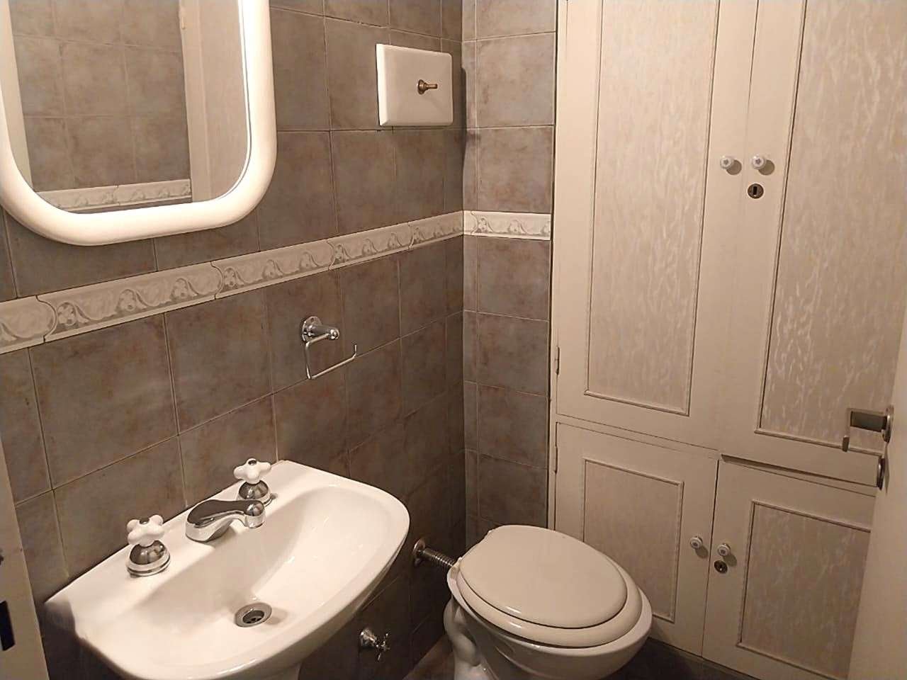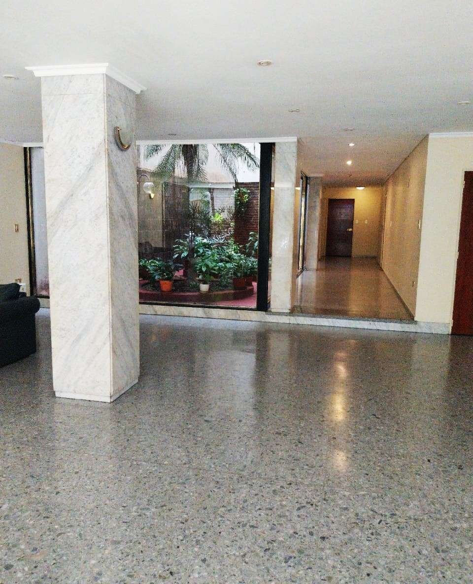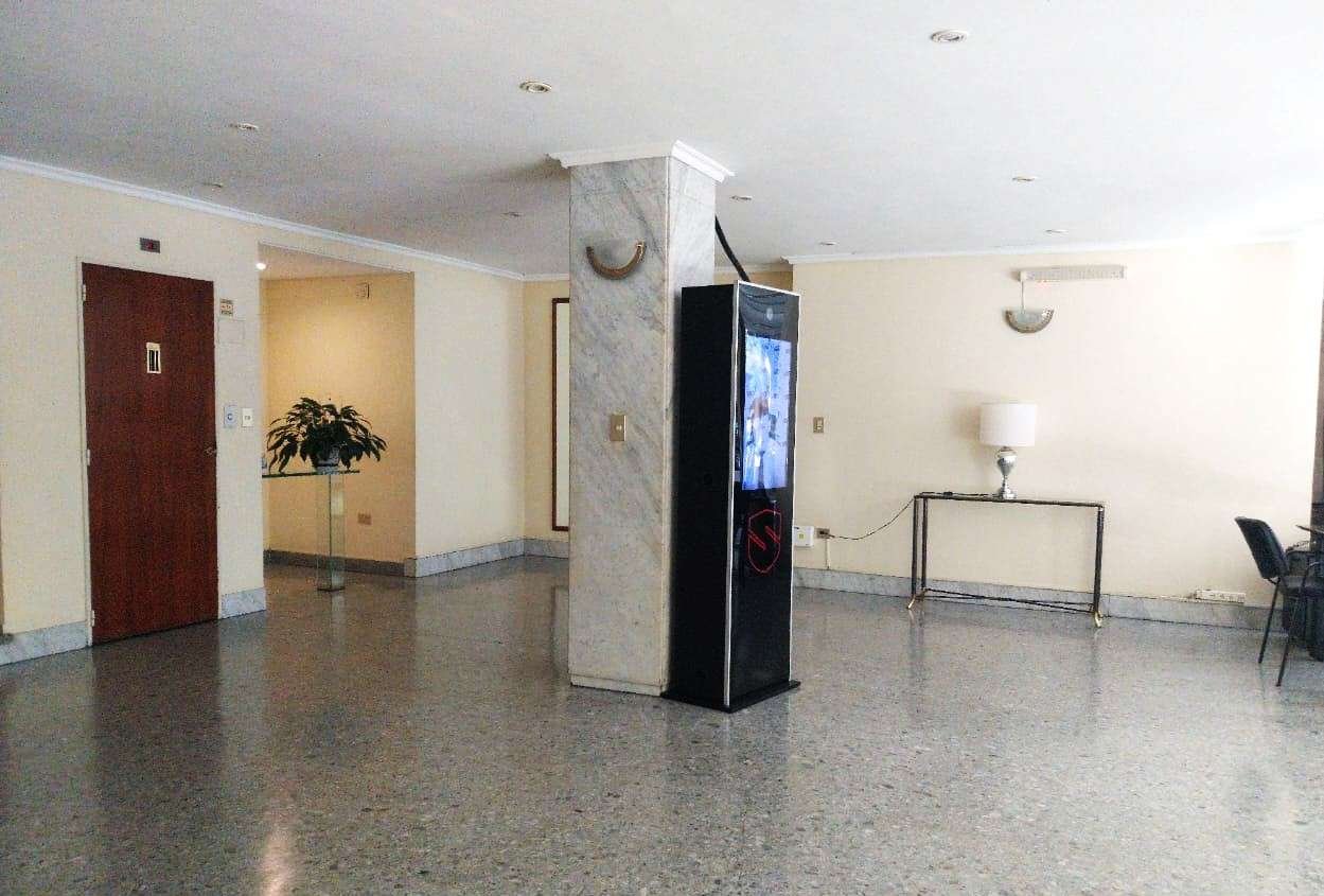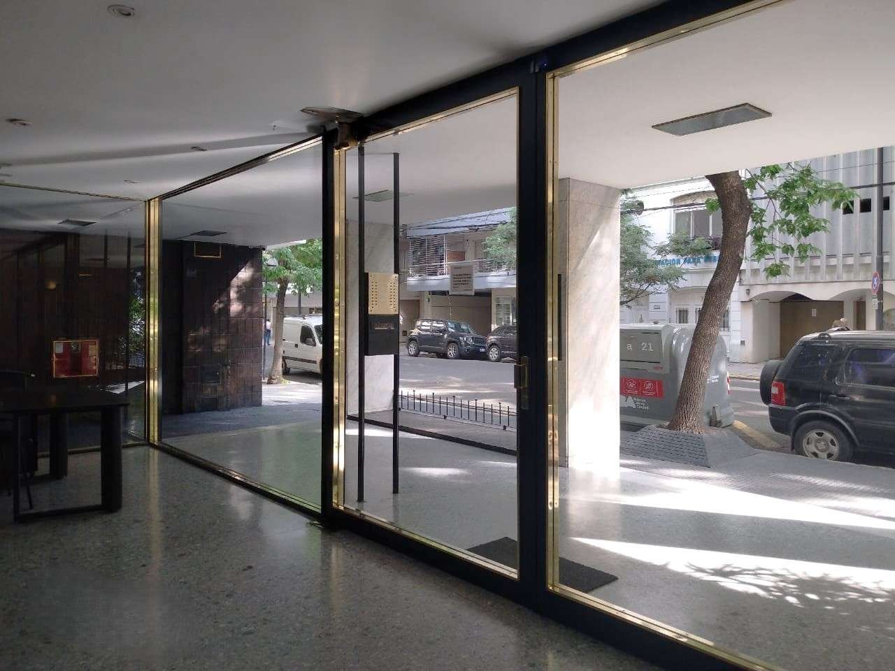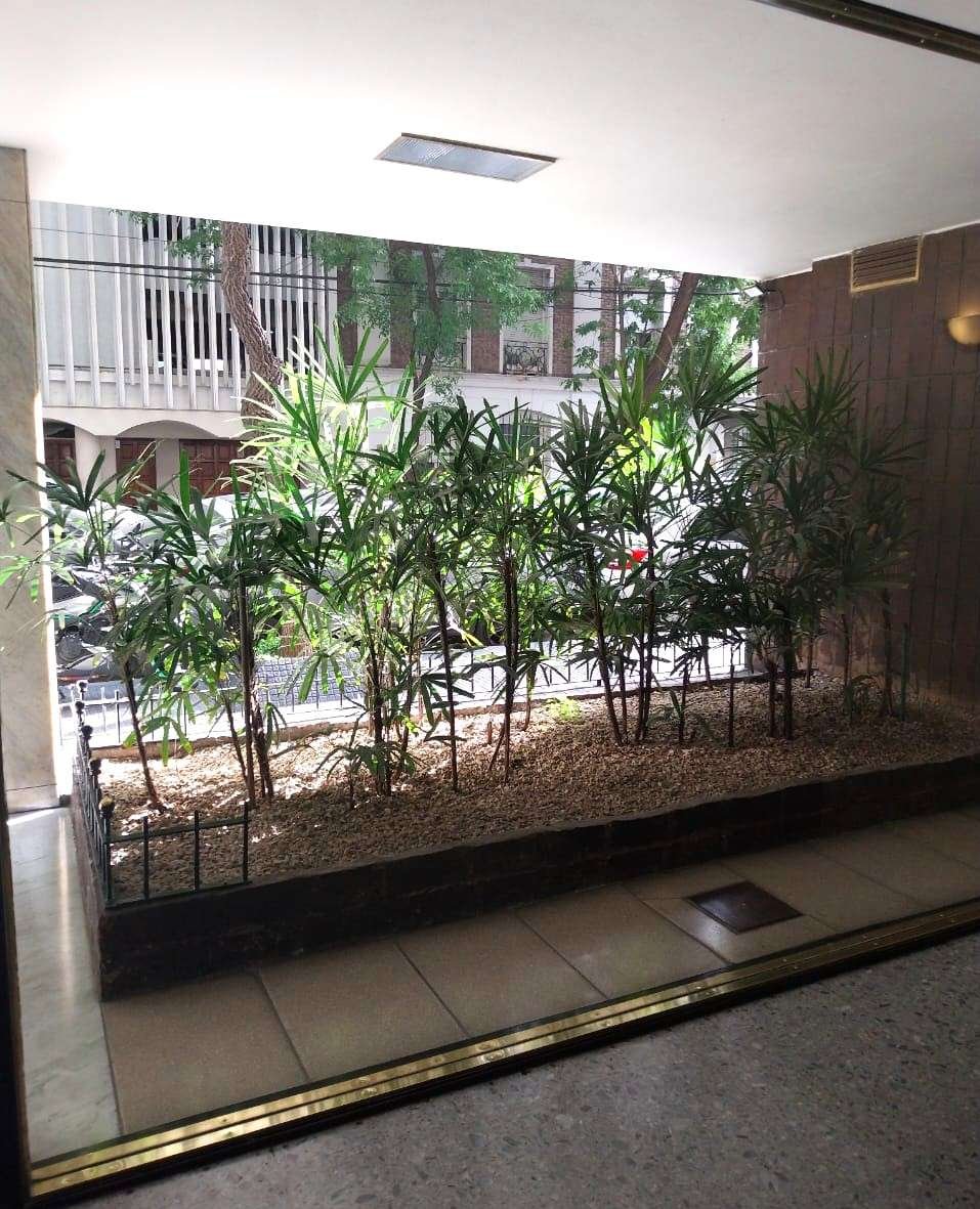 Edificio luminoso de doble frente y amplia recepción con jardines y muy luminoso, con totem, entrada principal, de servicio y de cocheras. Piso en orientación noroeste, en calle tranquila. Puerta principal con pallier compartido y puerta de servicio. Se ingresa a un pequeño hall, comedor y living que da al frente y termina en un balcón francés. Se divide el área privada con una puerta, en ella se encuentra un toilette reciclado hace diez años, una habitación con placard con interiores en muy buen estado, dos ventanas al aire y luz, ampliado mediante un arco hacia otra pequeña, un baño completo de época en excelente estado, la habitación principal con amplios placards buenos interiores y balcón al frente ideal para una mesa de jardín y dos sillas. La habitación principal tiene un split, la calefacción es mediante loza radiante. Se accede a la cocina mediante la puerta de servicio y también desde el hall de recepción, se ha incluido una apertura adicional en la pequeña habitación con el arco. La cocina, de amplio ventanal, anafre, calefón, horno, ha sido reciclada a nuevo hace 10 años, los muebles de bajo y alto y las mesadas de granito también, el baño de servicio con ducha, y el lavadero incorporado. Cuenta con un espacio para poner mesa para el desayuno. Da al aire y luz y cuenta con amplio ventanal.