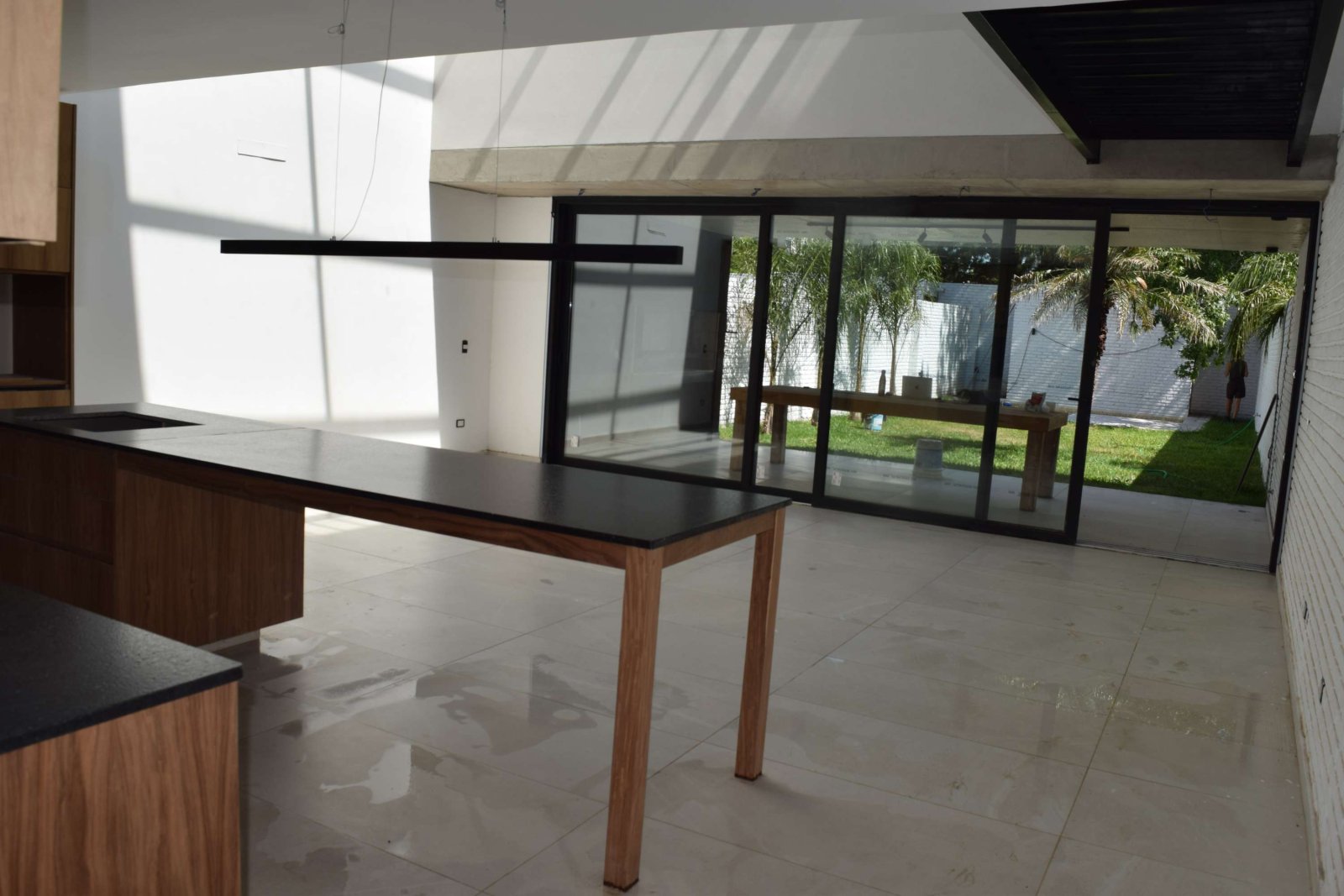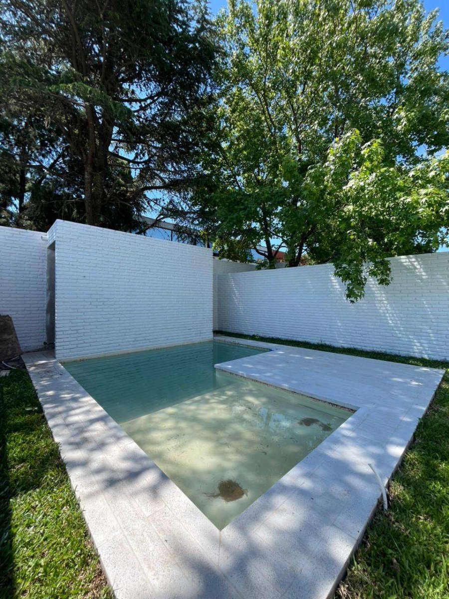 Cochera semicubierta, lavadero y toilette de recepción. Amplio living comedor con cocina integrada, con salida a galería con parrilla, jardín y pileta privada. Baño exterior.
