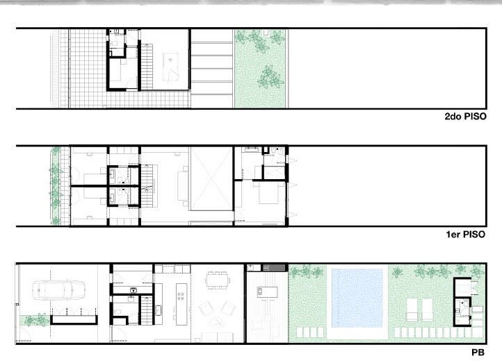 Las viviendas se desarrollan en tres niveles, con 225 m² cubiertos, 363 m² totales, sobre lotes de 280 m², con jardín propio y pileta privada, destacándose ampliamente dentro de su segmento.