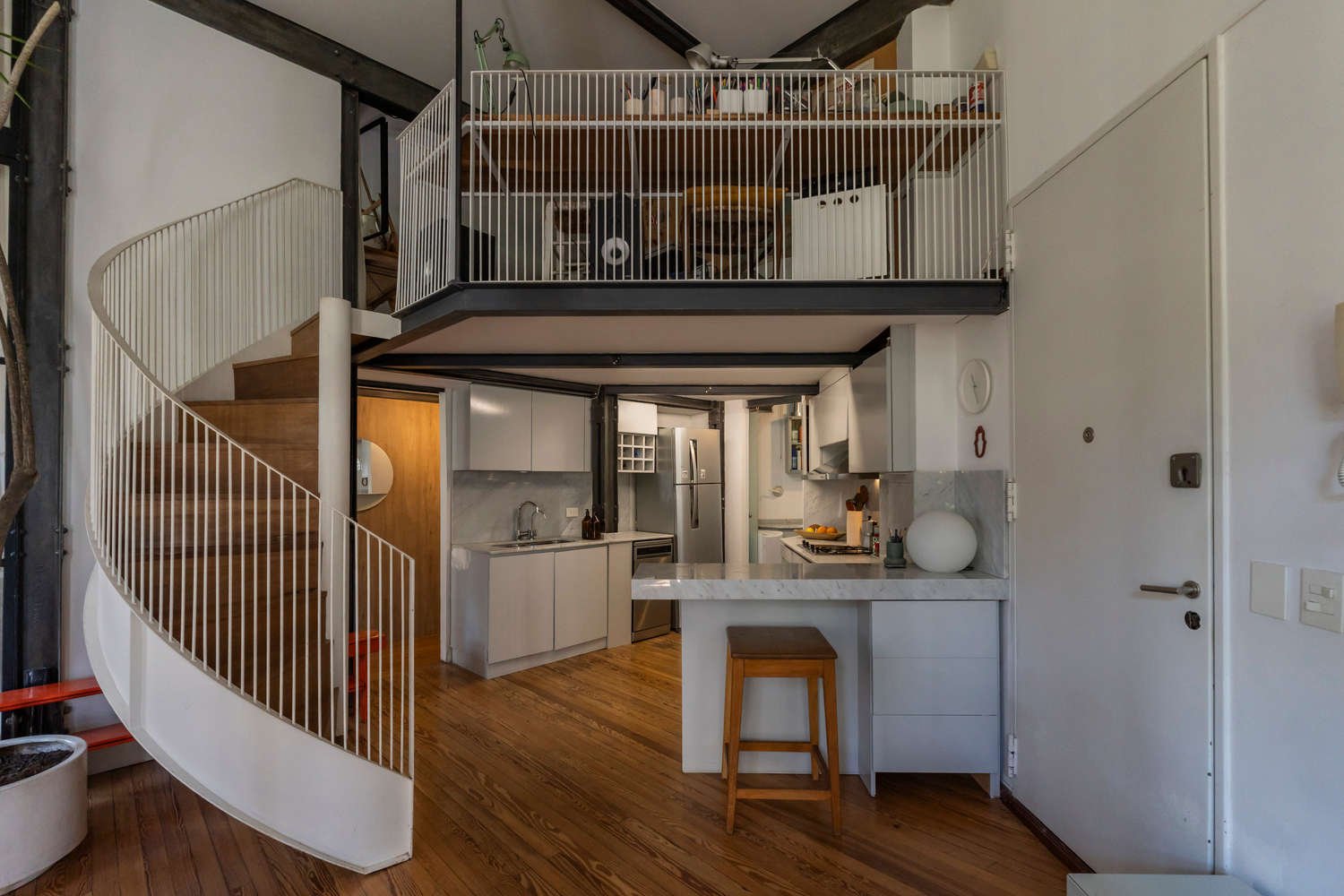 Único departamento en venta de estilo Francés en Palermo chico.Ubicado en una de las zonas más exclusivas de la Ciudad de Buenos Aires, sobre Av. Cerviño y con vistas abiertas a los cielos y a los jacarandás, este departamento al frente se encuentra en un tercer piso y se destaca por su luminosidad excepcional, su privacidad y su arquitectura singular. Forma parte del edificio más antiguo del barrio, una joya de estilo francés construida alrededor de 1910, reciclada con una intervención contemporánea de impronta industrial que conserva elementos originales de gran valor patrimonial. El piso cuenta con solo dos unidades, lo que brinda una sensación de semipiso y mayor privacidad. La planta, de geometría atípica y carácter único, ofrece cuatro grandes ventanas hacia Av. Cerviño que inundan todos los ambientes de luz natural. Los techos de aproximadamente cuatro metros de altura, la doble altura y las vigas originales a la vista generan una amplitud poco habitual, con vistas abiertas gracias a la gran distancia entre edificios sobre la avenida. El departamento fue totalmente reciclado, combinando pisos originales de pinotea con materiales modernos y una distribución pensada para la vida contemporánea. Dispone de living comedor en doble altura, cocina abierta integrada, entrepiso con espacio de escritorio, dos habitaciones amplias, un baño completo y lavadero independiente.