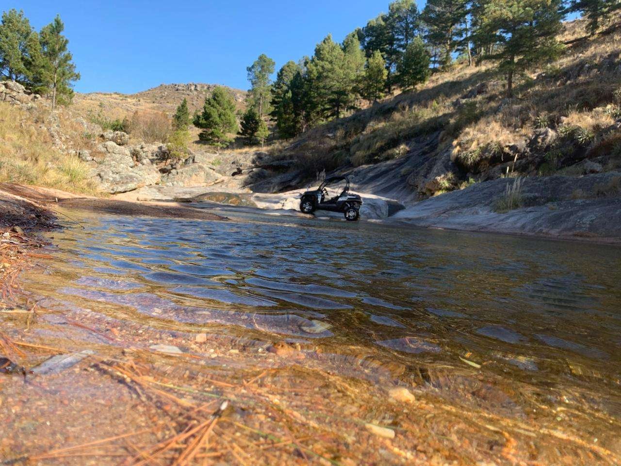 Son 850 hectáreas, 700 con título y 150 con posesión. Caminos de montaña, pinos, tres ríos (dos que hacen de límite natural y otro que atraviesa el campo). Ingreso por Ruta 14.