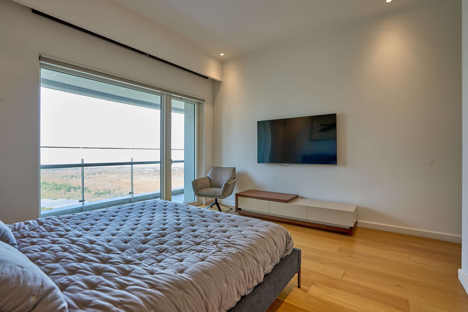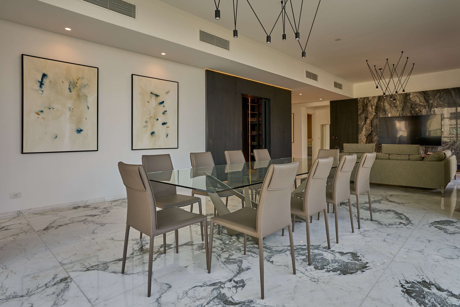 El área privada se compone de cuatro dormitorios, todos en suite, cuidadosamente diseñados para garantizar confort y privacidad. La unidad también dispone de dependencia de servicio, lavadero independiente y dos cocheras. Los interiores combinan pisos de mármol y madera en toda la propiedad, con materiales nobles y terminaciones de altísima calidad.