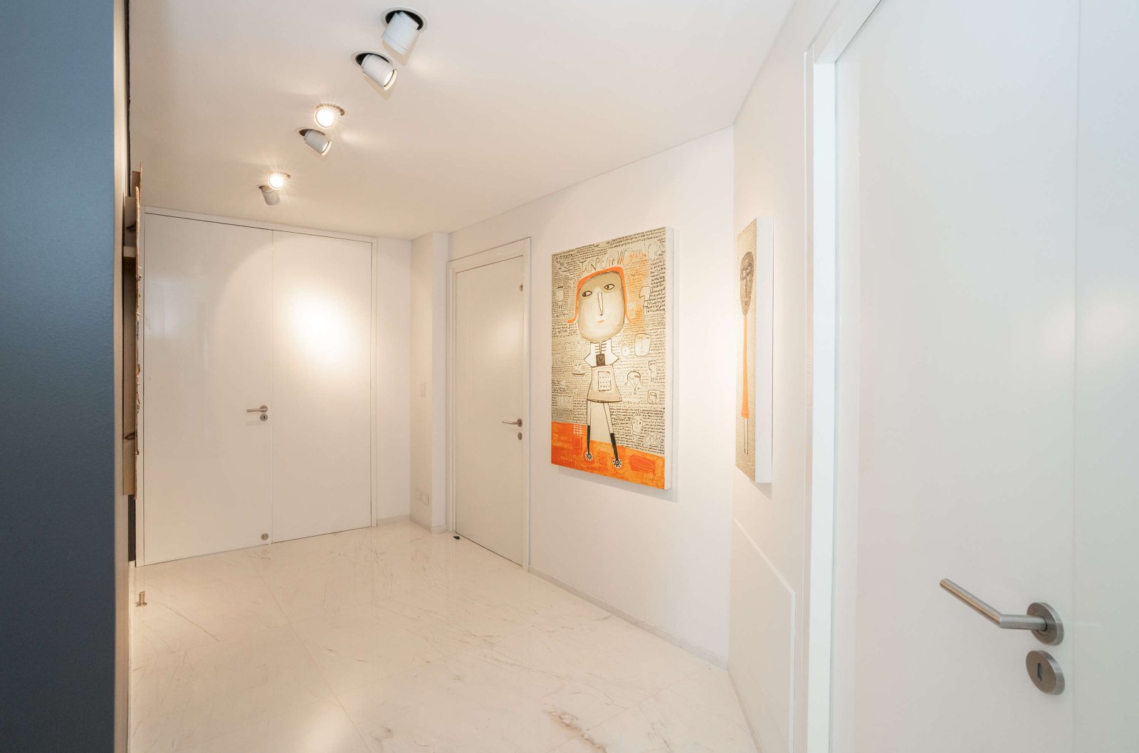 El acceso se realiza a través de un palier privado que anticipa el carácter exclusivo de la propiedad. La planta ha sido concebida para privilegiar la amplitud, la luz natural y la fluidez entre los espacios, con un generoso sector de recepción que integra living y comedor frente a amplios ventanales de piso a techo.